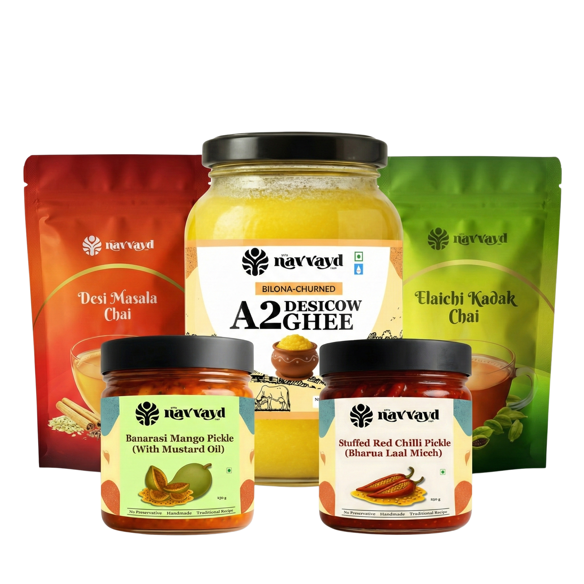 From estate-fresh teas and Bilona A2 Desi Cow Ghee to handpicked Kashmiri saffron and authentic pickles, every Navvayd product is: