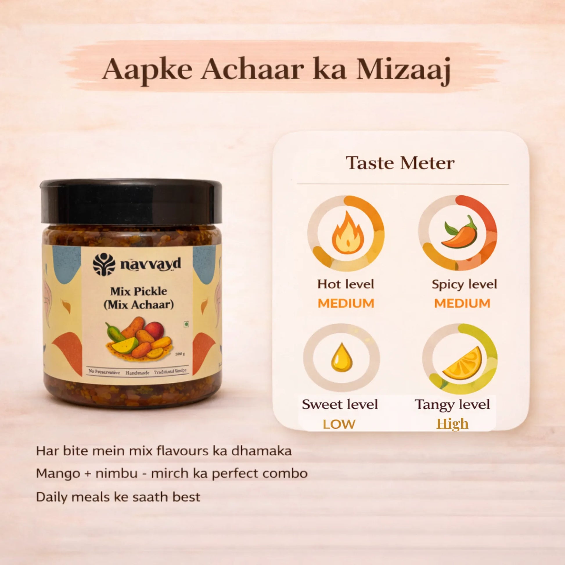 Crafted from traditional Indian recipes, our pickles are made using cold-pressed oils, sun-ripened ingredients, and zero preservatives. Just like your grandma made.